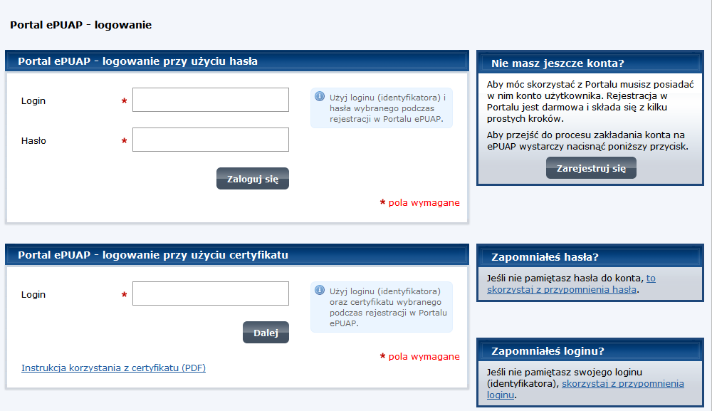 Logowanie z wykorzystaniem danych z ePUAP