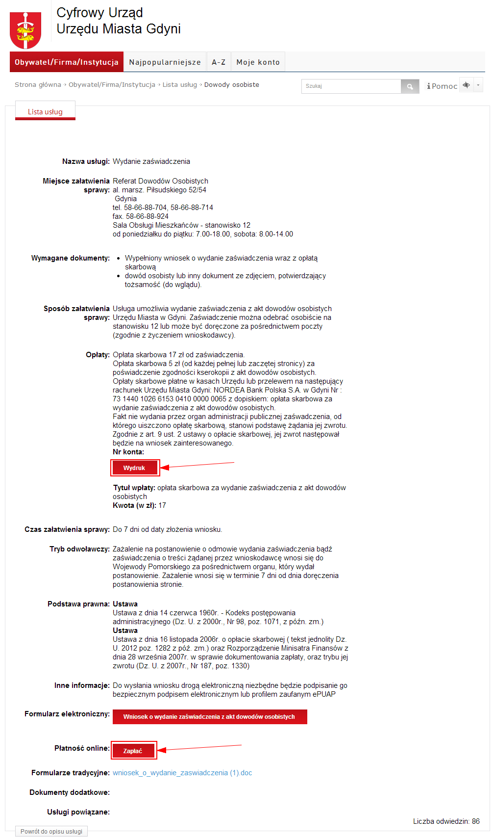 Odnośnik do formularza elektronicznego znajdziemy w Karcie usługi.