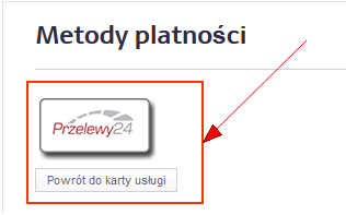 Krok 1. Przycisk Zapłać (znajduje się w karcie usługi) lub Przejdź do płatności (przycisk pojawia się po podpisaniu i wysłaniu dokumentu) umożliwia przejście do wyboru metod płatności, użycie spowoduje wyświetlenie logo Przelewy24.